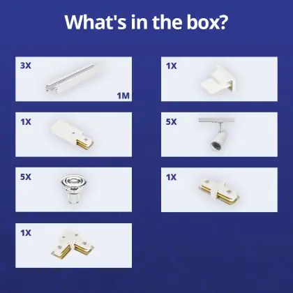Beschrijving Complete Set 1-Fase Rail L 1 x 2 Meter Wit | incl. 5x Spot + GU10 2700K 3W Dimbaar + Eindkap, Voedingsconnector en L -Verbindingsstuk