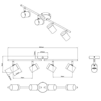 Lampfitting: Geschikt voor 4x GU10-lichtbronnen (niet inbegrepen), zodat je de helderheid en kleurtemperatuur naar wens kunt aanpassen.
