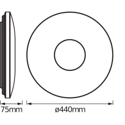 Beschrijving Ledvance LED Bulkhead Orbis Sparkledot 440 Wit 232W 2250lm - 830 Warm Wit | 440mm - IP20 - Click - Bewegings- en lichtsensor