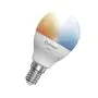 In ons assortiment E14 LED lampen valt er genoeg te kiezen. Vooral qua kleurtemperatuur (Kelvin) en vorm. Deze lamp heeft de volgende kleurtemperatuur: 2700K - 6500K Afstembaar Wit. Hoe lager de kleurtemperatuur, hoe warmer het licht. Wil je ergens sfeer toevoegen? Kies dan voor een E14 LED lamp van 1800 tot 2700 Kelvin. Hoge kleurtemperaturen zoals 4000 en 6500 Kelvin zijn op hun beurt beter geschikt als functionele verlichting. De vorm van dit product is: Kogel. Op zoek naar een ander type E14 LED lamp? Gebruik dan het zoekfilter 'vorm' aan de linkerkant van deze pagina. Ook handig om te weten is de lichtopbrengst van deze lamp. Die is 470 lumen.