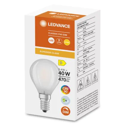 Beschrijving Ledvance Superior Classic LED E14 Kogel Mat 3.4W 470lm - 927 Zeer Warm Wit | Dimbaar - Beste Kleurweergave