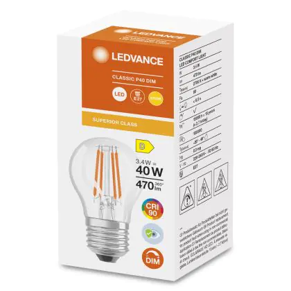Beschrijving Ledvance Superior Classic LED E27 Kogel Filament Helder 3.4W 470lm - 927 Zeer Warm Wit | Dimbaar - Beste Kleurweergave