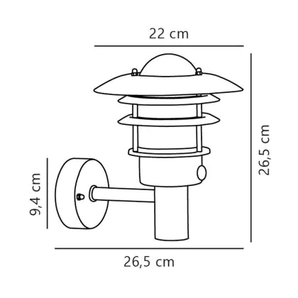 Beschrijving Nordlux Lønstrup 22 Wandlamp Staal en Glas Grijs | 220mm - IP44 - Geschikt voor E27 - Bewegings- en Lichtsensor