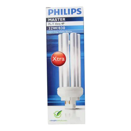 De Philips PL-T Xtra 4P lampen onderscheiden zich door een extreem lange levensduur, tevens zijn ze zeer energiezuinig. De PL-T Xtra 4P serie kunt u gebruiken op een elektronisch voorschakelapparaat. De Philips PL-T Xtra 32W 830 4P (MASTER) lamp heeft een lengte van 14 cm en heeft een GX24q-3 lampvoet, wat overeenkomt met 4 pinnen. Daarbij heeft de lichtbron energielabel B. De levensduur is 33000 branduren. Als de lamp begint te knipperen en moeizaam opstart, is deze aan vervanging toe.